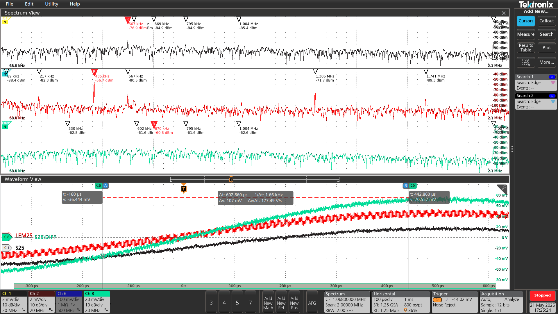 Black trace: Sensitec CAS5025SRA-LI output (single-ended)
