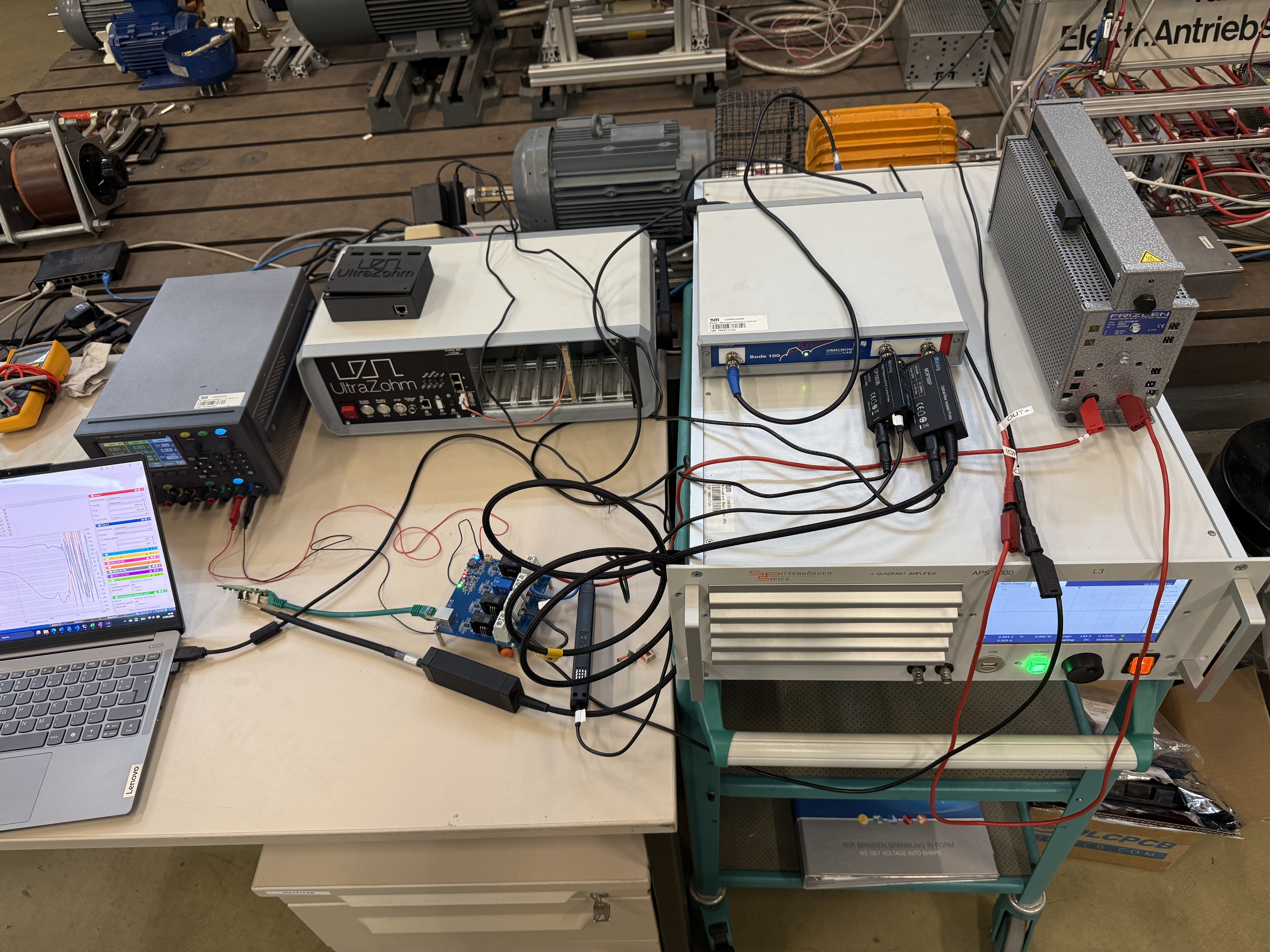 Spitzenberger APS 1000 (Input Modulator Current Amplifier): Operates in constant current (CC) mode to inject a sinusoidal current. Accepts AC voltage signals from the Bode 100 output and amplifies them into a scaled-up output current. Also allows DC offset to be added for mixed-signal excitation.