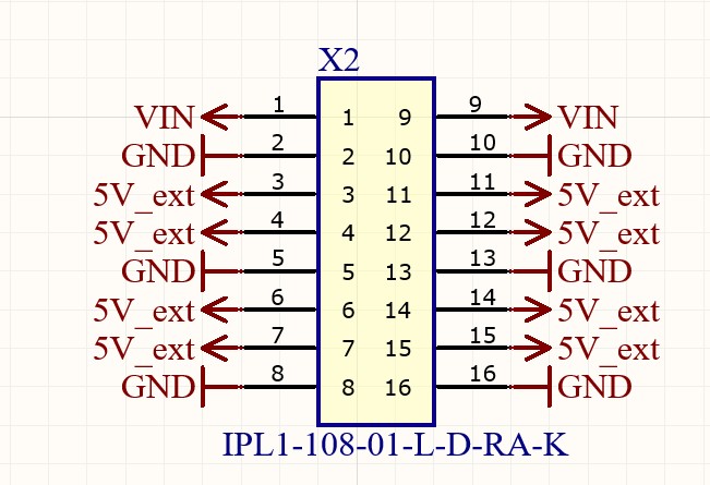 Power supply with 7V to 65V input range. Either use connectors J1, J2 (IPL1-102-02-L-D-K, Cable: