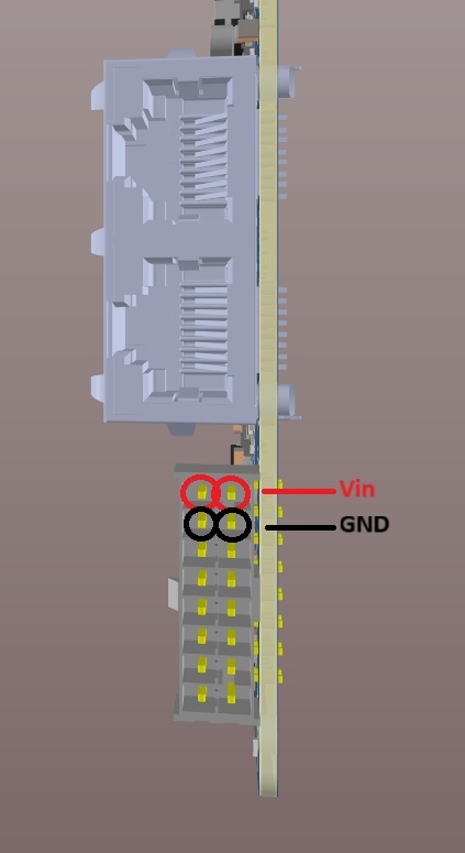 Fig. 283 Pins for VIN are marked in blue and GND in orange. Connectors are marked in yellow. Cable should be configured accordingly.#