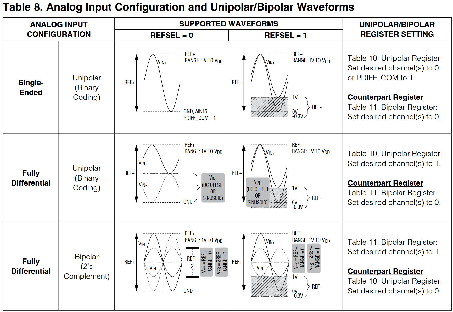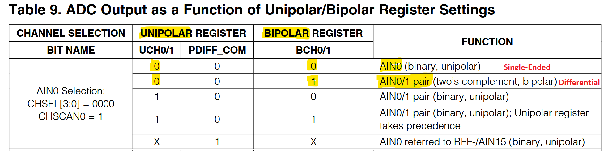 In single-ended case: Each ADC contains 16 channels, which are sampled one after each other. Hence, 16 +1 SPI messages are required to sample and send the 16 channel values.